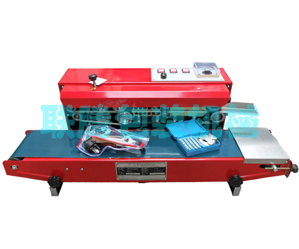 當(dāng)接通電源后,電熱元件產(chǎn)生熱量,使上下兩加熱塊急劇升溫并通過溫度控制儀和調(diào)整裝置來調(diào)整所需封口材料的溫度和速度,塑料包裝袋由傳送帶傳送,將包裝袋的封口部分送入運(yùn)轉(zhuǎn)中的兩根封口帶之間,塑料袋封口部分在上下兩根封口帶的夾持下送入加熱區(qū),封口帶在加熱區(qū)受到兩加熱塊的擠壓,使塑料薄膜受熱后粘合,然后,在封口帶夾持下送入冷卻區(qū),滾花或印字輪滾壓,使塑料袋的封口部分,滾壓出條紋狀或網(wǎng)狀,并且印出所需要的文字.